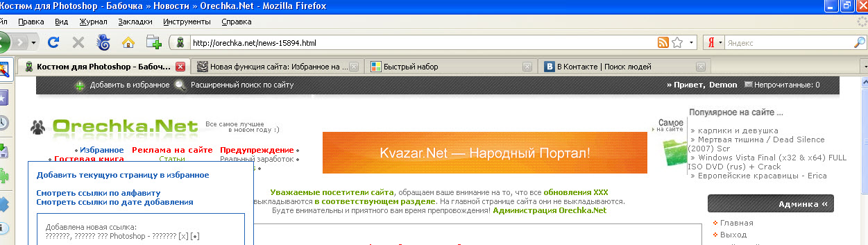 | Новая функция сайта: Избранное на этом сайте (на ajax) |